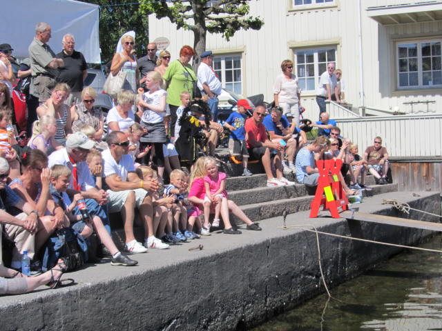 Så er sommeren kommet til Langesund. Og folk koser seg. Her ser vi hvordan det var i trappa i kommunehullet lørdag 4. juni. OK, det var shantyfestival, men sommeren er populær i Langesund.