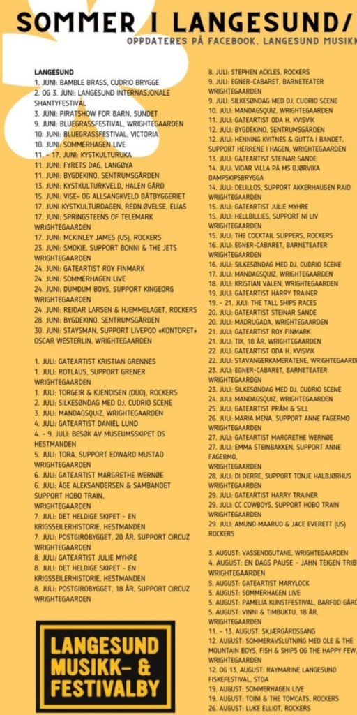 Visit Bamble har laget denne oversikten for Sommer i Langesund