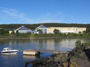med badeanlegg ble bygget omkring 1990. Det var Gunnar Moen, den gang teknisk sjef i Bamble kommune, som hadde idéen og med sin smittende entusiasme fikk med seg investorer. Etter et par økonomiske saneringer drives hotellet etter hvert støtt, og bygningsmassen vedlikeholdes og oppgraderes slik at de alltid er innbydende for gjester både fra fjern og nær. En glitrende juvel som har Skjærgårdshallen som nærmeste nabo.