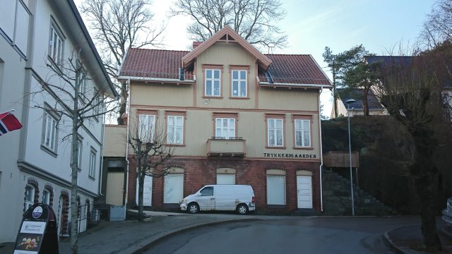 I bunnen av (sør i) Kirkeveien ligger Trykkerigården. Her ble Langesunds Avis trykket frem til begynnelsen av 1970-tallet.