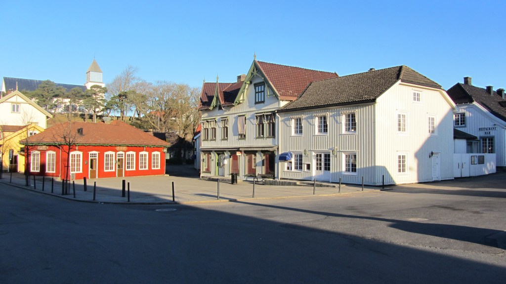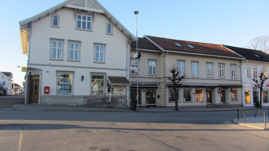 I det rød bygget holdt Thormodsens bakeri til frem til 1970-tallet. I mange år etter det var det discotek der.