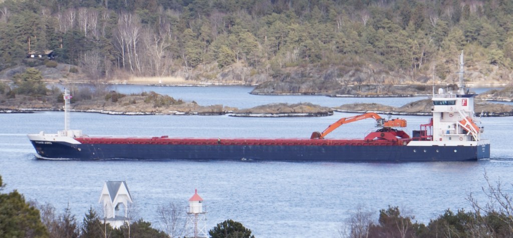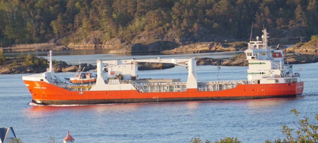 «Northern Pioneer», CO2 tanker (Liquefied gas carrier LNG), LOA 130/B 22, Built 2024 Flag: Stavanger 2024. Figgeskjær, Langesund 15.06.2025 13:20 ——- On it’s way to Brevik for loading Co2«Delfi» Slepebåt med lekteren Dana II, LOA/B/D 28/8/4 Built1979. Flag: Finland, 12.2..2021 09:21, Langesund. Ved utsprengingsarbeidene i leia Gamle Langesund«Zoe Schulte» LPG tanker, LOA/B/D 146/22/7 Built 2015 Flag: UK, 10.2.2021 15:20. Skjærgården, Langesund«Gas Myth» LPG tanker. LOA/B/D 100/18/5m. Built 2011. Flag Liberia. 27.01.2021 11:38 Figgeskær, Langesund Sikret av «Boxer»«Delfi» Tug LOA/B 28/8 m. Built 1979. Flag Finland. 24.01.2021 13:30, Langesund«Katharina Schepers» container ship, LOA/B/D 151/23/8 m. Built 2012. Flag Cyprus. 09.01.2021 12:54 Figgeskær, Langesund«Ditzum» General cargo vessel, LOA 98,8 m, Built 2005, reg. Gibraltar. 04.01.2021 10:19 Figgeskær, LangesundVikstraum 8.11.2020 10:30